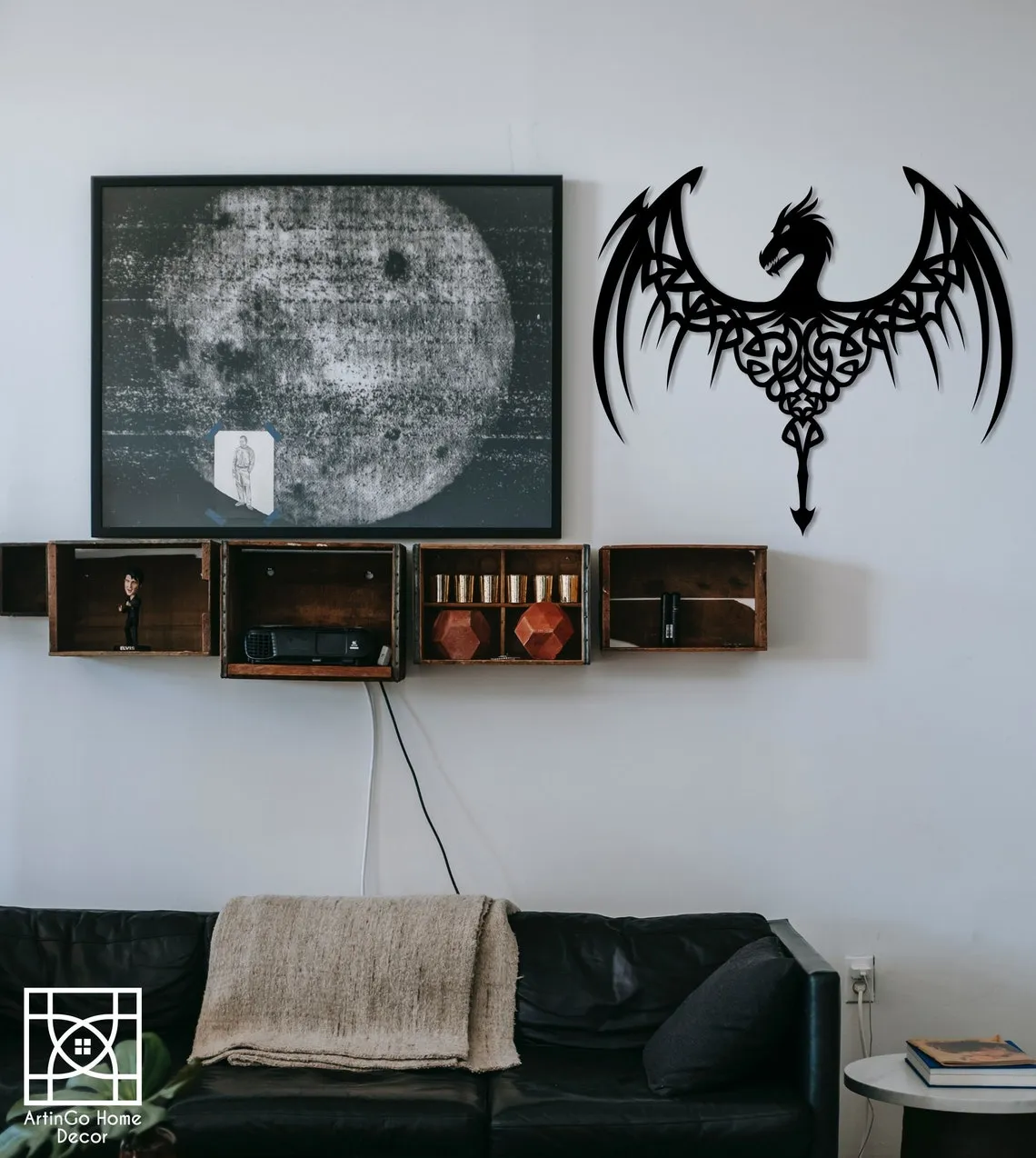 Celtic Dragon Wooden Wall Art, Natural Wood Veneer, Celtic Dragon Wall Decor