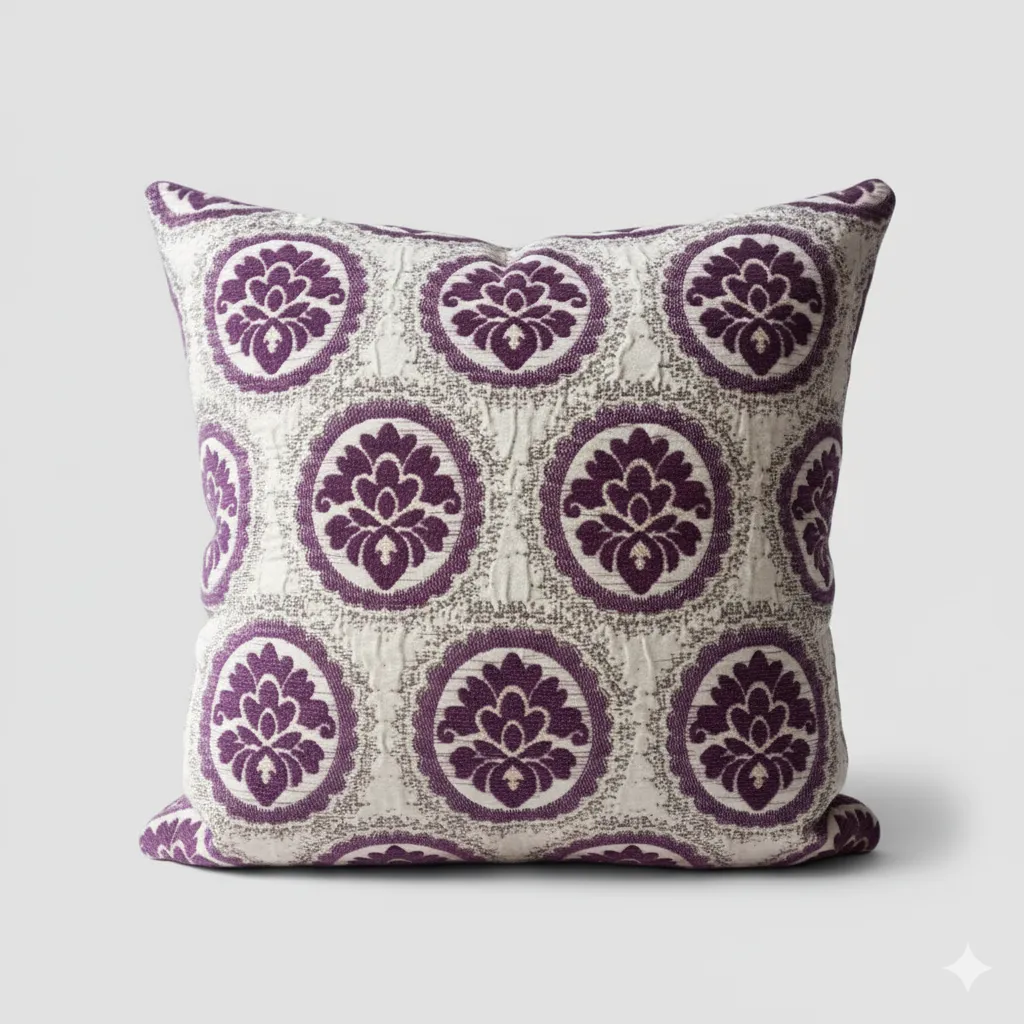 Luxury Jacquard Purple Velvet Cushion Cover – Patterned Design