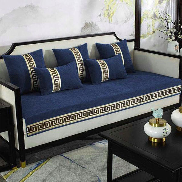 Versace Velvet Sofa Covers with Cushion Covers – Blue